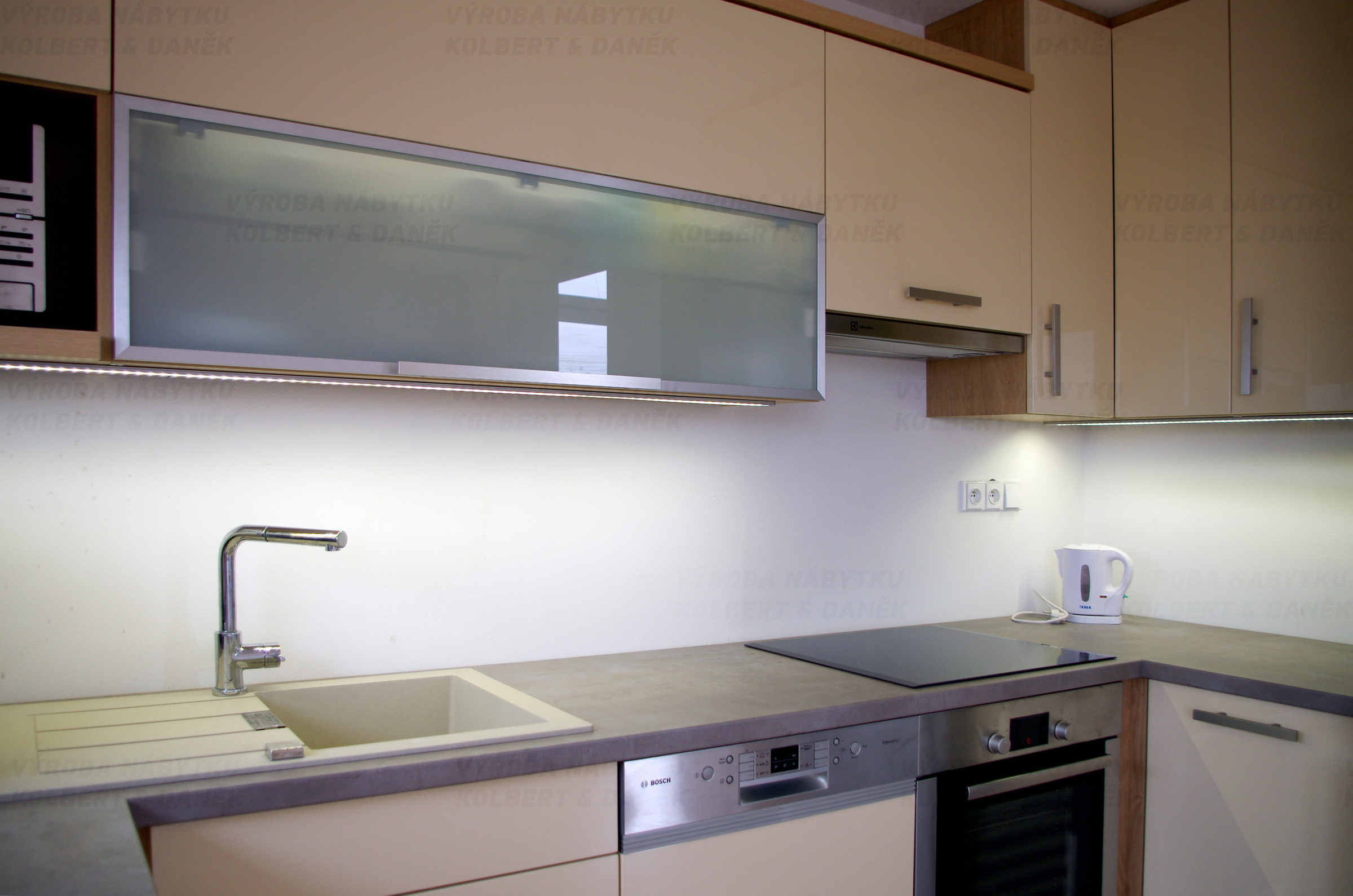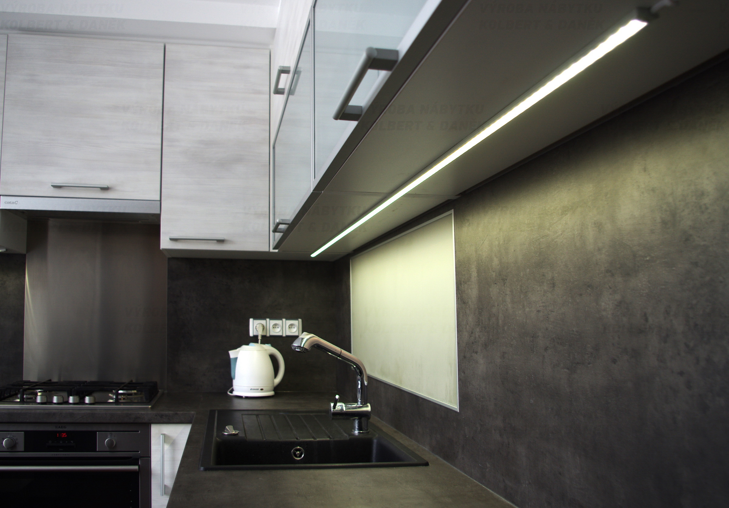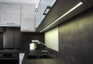 Osvětlení kuchyně LED páskem je stejnoměrné po celé pracovní ploše.