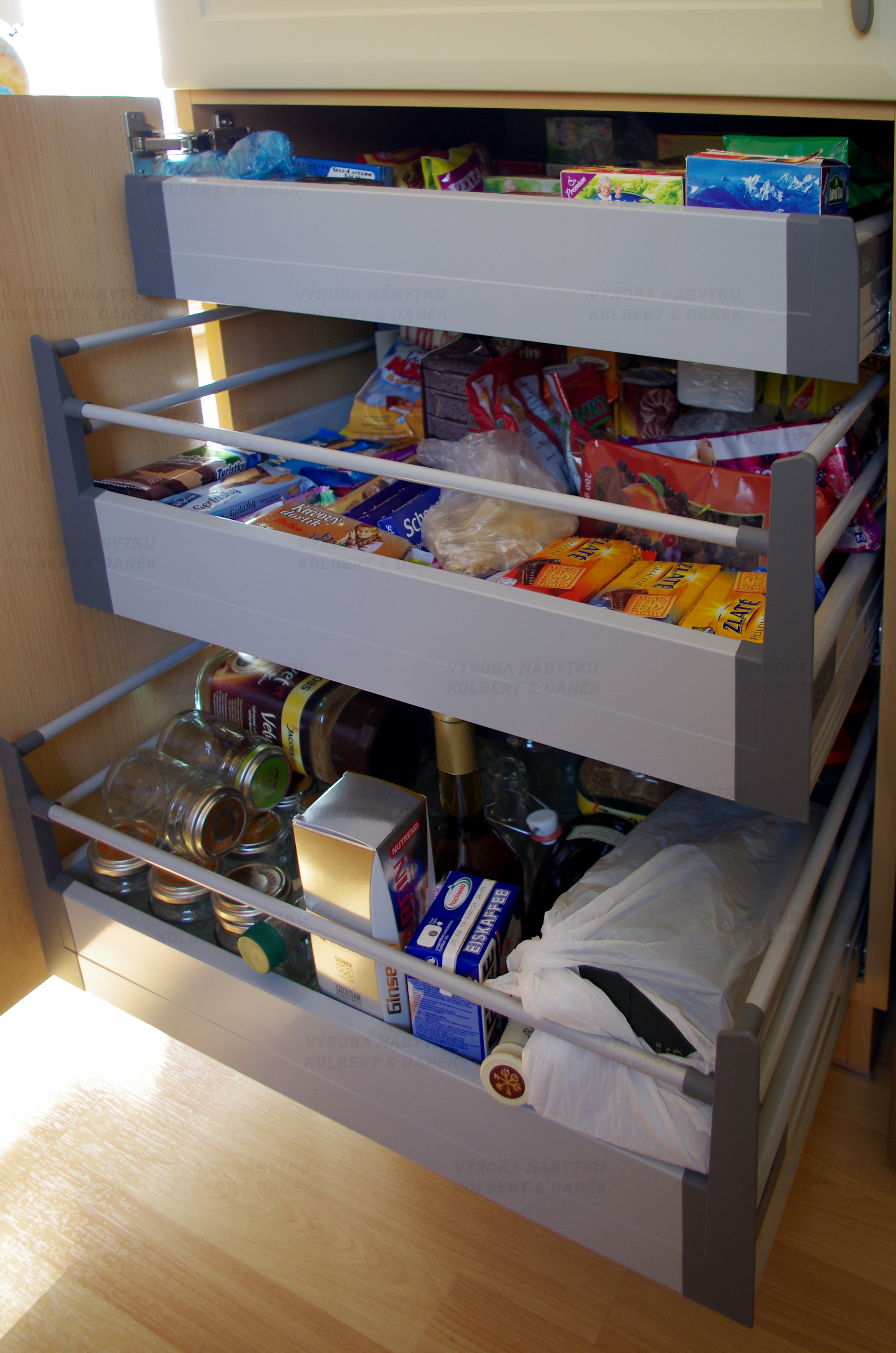 Do spižní skříně se je pohodlný přístup díky vnitřním zásuvkám.