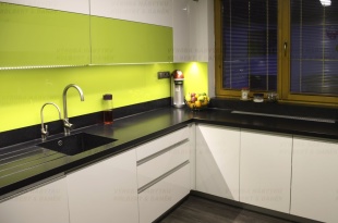 Nádherná kuchyně v laku se skleněným obkladem.